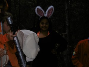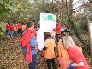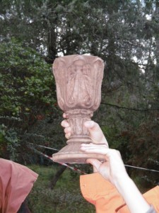 Nous sommes donc parti à sa recherche, il nous avait laissé trois pistes sous forme de messages codés, que nous avons déchiffrés sans trop de difficultés ! Rapidement, nous avons retrouvé le Bouffon du Roi en possession de l’Épée. Il avait découvert où trouver les Anneaux de la Paix, nous l’avons donc suivi. En chemin, nous avons rencontré un Lapin avec lequel nous avons pu communiquer grâce à notre potion qui fait parler les animaux (préparée au week-end dernier avec la Dame du Lac). Celui-ci nous a conduit jusqu’au coffre enfermant tout le nécessaire pour fabriquer nos propres Anneaux de Paix.
