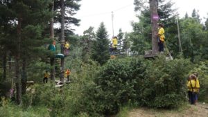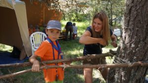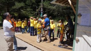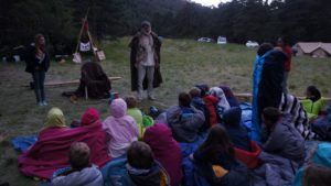 L’aventure reprend le lendemain sous un grand soleil où le village est remonté rapidement. Après la tempête, une grande surprise attend nos gaulois, ils doivent s’entrainer à se cacher dans les arbres mais pour y arriver une marche les attend. Tous habillés de jaune ou orange, nos gaulois démarrent un accro-branche. Après s’être bien entrainer à passer d’arbre en arbre, à sauter d’un arbre de 9m, de faire du vélo dans les airs, un peu de repos serait la bienvenue. Lorsqu’à la fin de notre dîner, Blablaix après être passé de village en village, arrive sous sa peau de bête à Bonhumora. Il a passé la soirée à conter des histoires, quand hélas la pluie est survenue. Mais rien n’a arrêté nos Gaulois et les contes et légendes ont bercé leur soirée bien protégés sous une bâche.