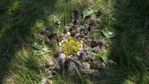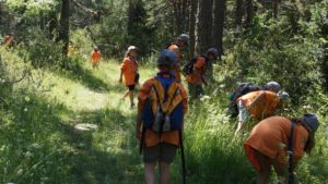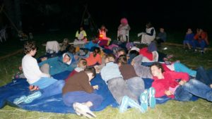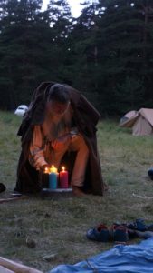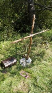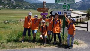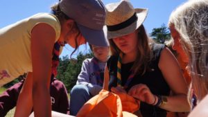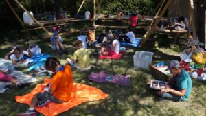 A notre arrivée, nous avons découvert leurs superbes installations préalablement construites par leurs jeunes druides. Nos jeunes Gaulois et Gauloises ont eux aussi mis la main à la patte avec leurs coins sizaines, coins salle de bain, huttes, composte… Bonhumora est composé d’un groupe de druides qui les ont guidés tout au long de notre odyssée : Naturix, Olivierix, Cogitix, Archix, Bobolix et Alafolix. Afin de recevoir nos lettres, ils ont construit un grand étendard à leur effigie qu’ils ont placé à l’entrée du village. Le soir venu, Amnesix qui venait encourager ce nouveau village se retrouve assommé sur le chemin du village avec tous ses poissons empoisonnés qu’ils voulaient leurs offrir. Qui est le coupable entre Acidentrix, Keskonrix, Plaintcontrix et Zérozérosix ? Ils ont dû enquêter !!!