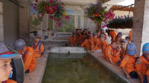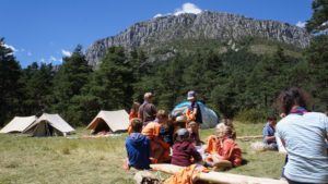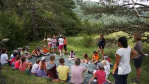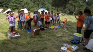 Une nouvelle journée démarre dans la plaine avec déjà beaucoup de vent mais rien n’arrête les Gaulois ; ils ont visité des contrées et/ou pays pour des Olympiades que nous leur avons conseillés. Ils sont allés en Corse, en Normandie, en Bretagne, en Egypte, en Grèce et enfin à Paris. Quand d’un seul coup le ciel leur ait vraiment tombé sur la tête et ont dû démâter leurs huttes avant qu’elles s’envolent. Les druides ont tout organisé pendant que les jeunes Gaulois se sont mis à l’abri du vent et ont préparé des scénettes sur certaines de nos odyssées. Ensuite tout le monde s’est retrouvé dans le centre de Caille sous un grand chapiteau avec de vraies toilettes et toutes leurs affaires pour dormir. Ils ont tous dormis ensemble bien protégés du vent mais la température a bien chuté. Dans leurs huttes, ils ont vécu une différence de température de 5,2°C à 42,3°C. Pour finir la semaine avec une petite gelée matinale sur le plateau du village.