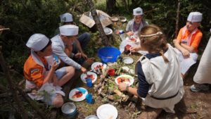 Chaque sizaine a souhaité préparer pour leur druide un repas typiquement gaulois. Tous nos jeunes Gaulois se sont munis d’une calotte et d’un tablier de cuisinier pour se lancer dans de grands menus. Les druides ont passé la journée à manger et ont été bien rassasié. Ils ont découvert des plats dont ils ignoraient l’existence. Par Toutatis !!! Les prix du goût, équilibre, originalité, accueil et gaulois ont été remis. Afin d’évacuer ces grands plats de chefs, Costorix, La grosse Bertha et Falbala sont survenus le soir pour les préparer à être de vaillant Gaulois et leur apprendre à déjouer les pièges des Romains.