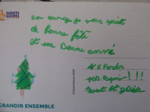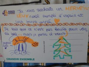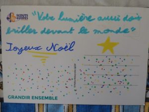Samedi 17 décembre, 13 parents et amis du groupe scout ont apporté « la lumière de la paix de Bethléem » aux détenus de Grasse, et leur ont distribué les cartes de soutien que les jeunes louveteaux/jeannettes, scouts/guides et pios/caravelles avaient pris le temps d’écrire.