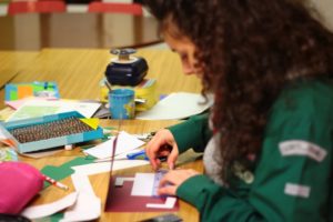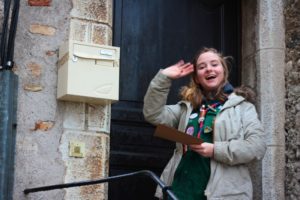 Après avoir fait ensemble des paquets cadeaux à Darty dimanche matin, nous nous sommes rendues à St Paul de Vence, où les Sœurs Dominicaines nous ont accueillies chaleureusement. L’action principale que nous avions prévues pour ce week-end était la création de cartes de vœux, que nous avons ensuite distribuées dans les habitations du village. Dimanche après-midi et lundi matin nous avons ainsi confectionné trente cartes de vœux, et lundi après-midi nous nous sommes rendues à St Paul de Vence sous la pluie pour les glisser discrètement dans les boites aux lettres, espérant faire de belles surprises aux habitants.