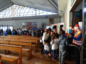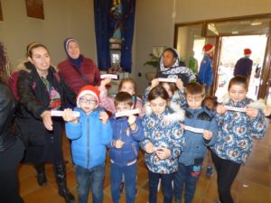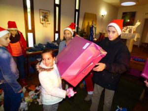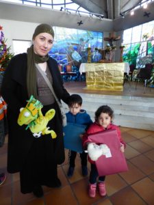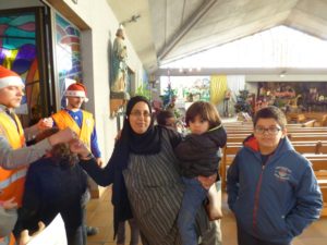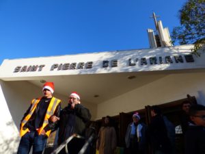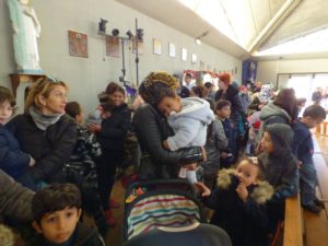 A travers cette action si belle soit-elle, quelque chose de bien plus grand et inattendu était palpable : dans ce quartier si mal réputé de Nice, nous avons vu des familles d’origines, de cultures et de religions différentes vivre simplement et réellement dans la coexistence, telle qu’elle nous avait été définie par l’association Coexister une semaine auparavant ! : à l’intérieur de l’église catholique Saint Pierre de l’Ariane, au son de chants tels que « Regarde Marie… » ou « Que vienne ton règne… », des femmes de toutes origines (maghrébine, albanaise, ukrainienne…), voilées ou non, accompagnées de leur mari pour certaines, attendaient patiemment avec leurs enfants, quelques fois plus d’une heure pour qu’ils reçoivent leur unique cadeau de fin d’année.