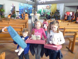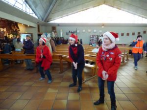 Samedi 18 décembre après midi, 2 caravelles, 1 scout et 1 guide, accompagnés de quelques amis de la paroisse et de leurs parents, sont allés aider le père Noël de l’Ariane à distribuer des cadeaux à quelques 600 enfants de familles démunies.
