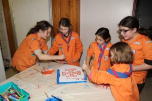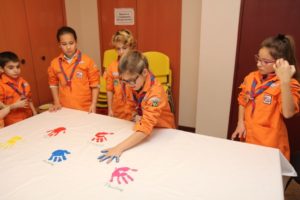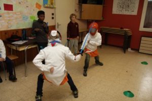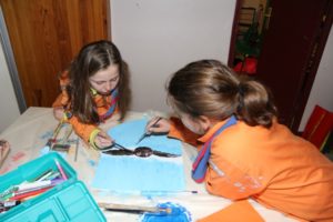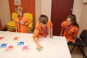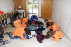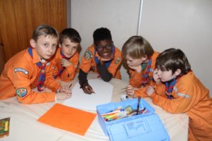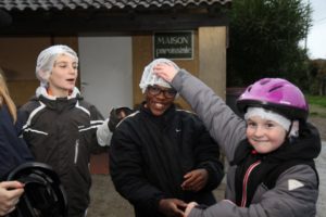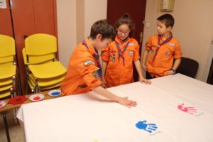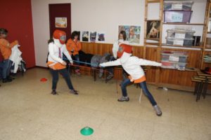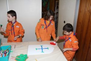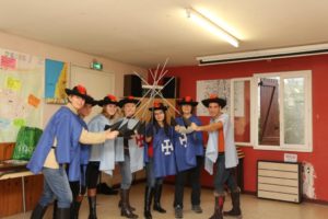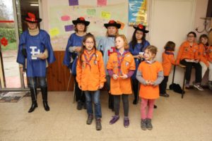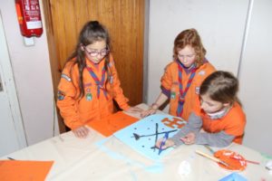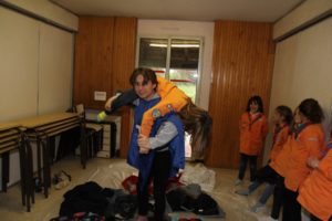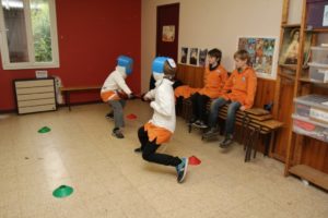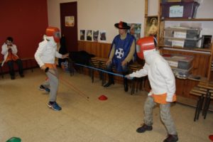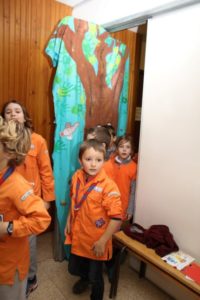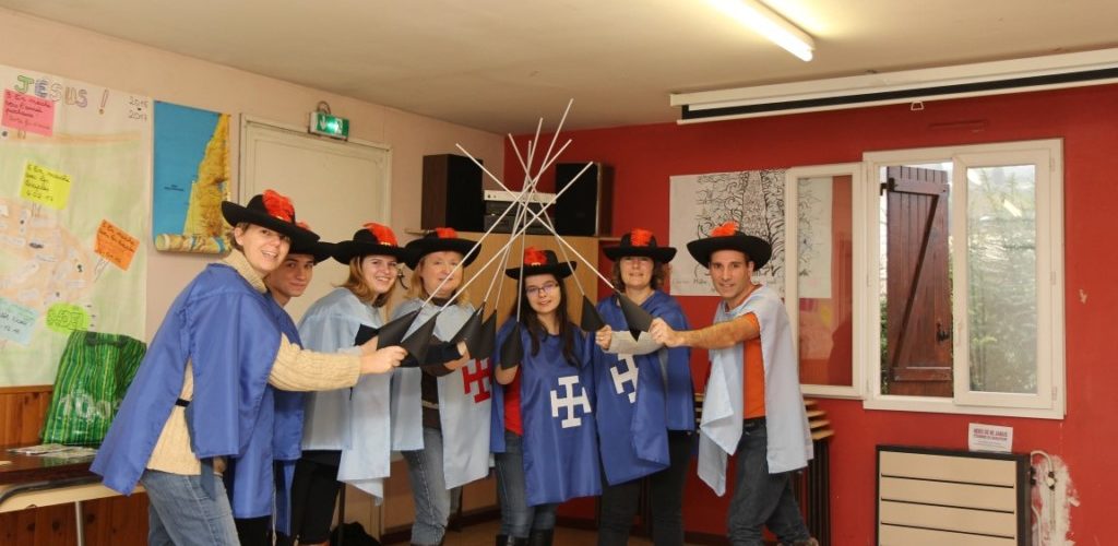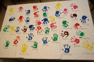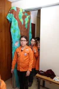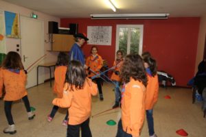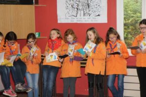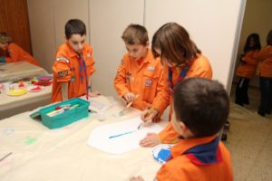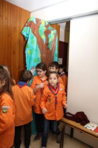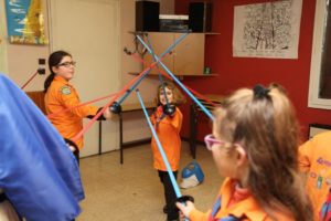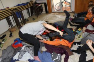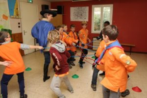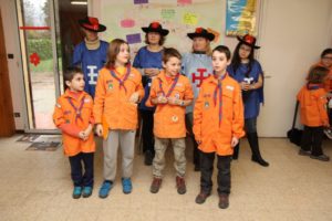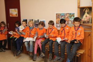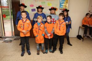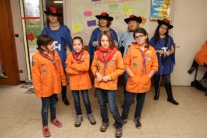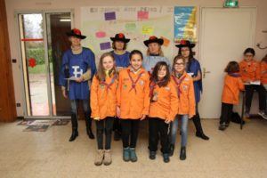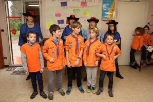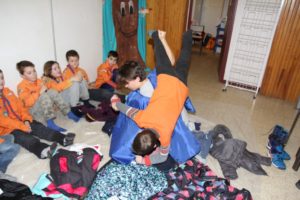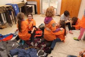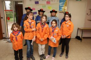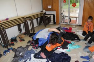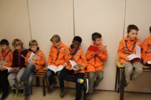 Nous sommes arrivés à 10 heures. Nous sommes allés à l’intérieur où les chefs nous ont donné les carnets de chants faits par Gabriel et Eulalie (les veilleurs de mémoire. Puis nous avons fait les sizaines (là, il y a eu beaucoup de discussions…). Après avoir fait les sizaines, les chefs nous ont partagés en 2×4 sizaines.