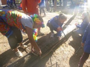 Après, on a taillé, couper, pour faire des flèches polynésiennes. Enfin, un concours de lancer de flèches… et les winners sont … LES TUTI FRUITY !!! Voilà, tout ça pour vous dire qu’on l’a trouvé (la magie de la vie pour ceux qui n’arrivent pas à suivre ce qui est tout à fait normal.)
