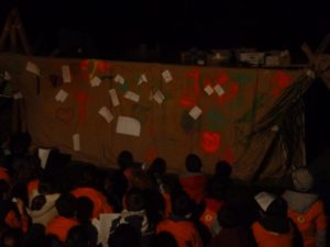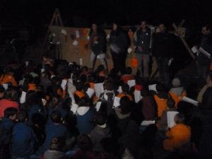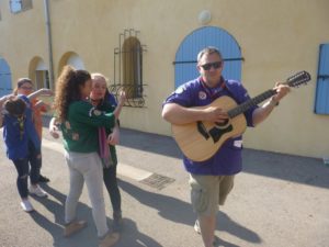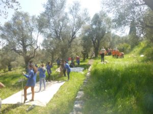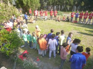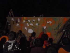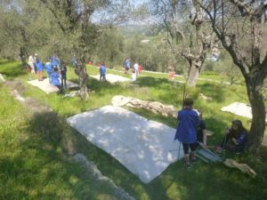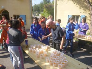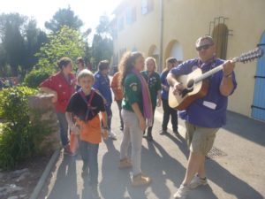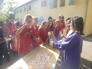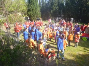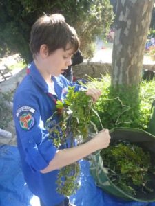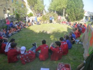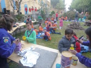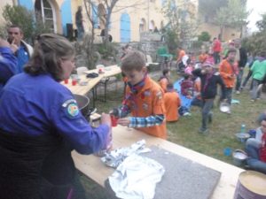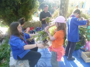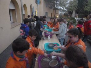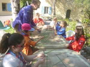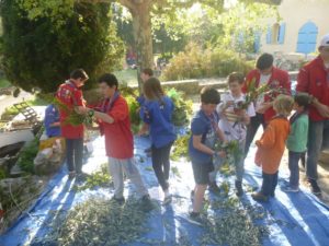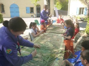 On a d’abord fait plusieurs activités : tressage de rameaux, fabrication de marionnettes et pendant la veillée on a représenté les scènes de la semaine sainte avec les marionnettes. Le lendemain, messes et vente des rameaux pour l’association SOS Méditerrannée.