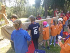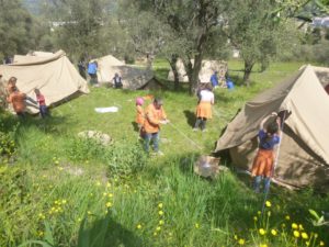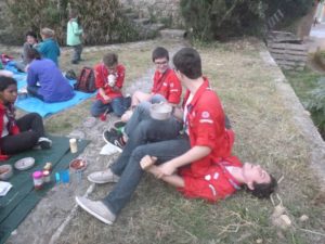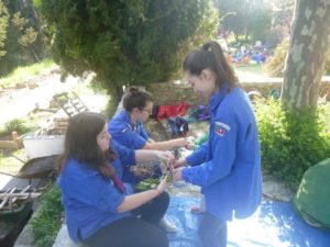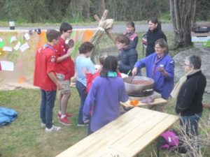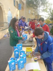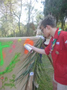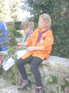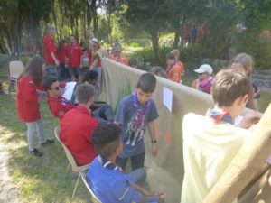 Nous sommes arrivés à 14h. Puis les chefs nous ont demandé d’aller monter les tentes. Puis ils ont fait 8 groupes. Les 8 groupes se sont répartis dans 4 ateliers (tressage de rameaux, construction de marionnettes, réflexion spi, et mises en scène). Puis c’était l’heure du repas, la vaisselle et enfin la veillée où nous avons fait les scènes que nous avions préparées pendant les ateliers qui faisaient le chemin de croix. C’était trop marrant.
