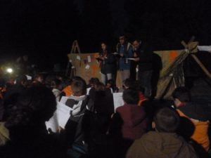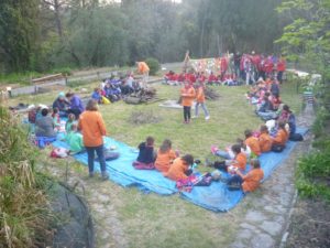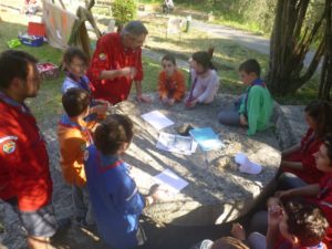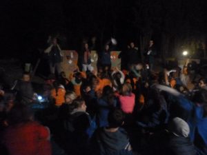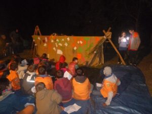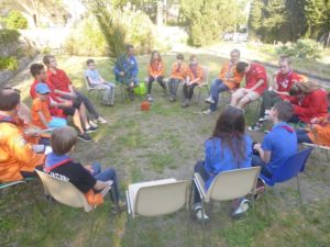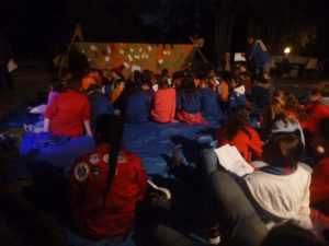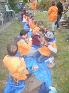 Pour finir, nous avons fait la Veillée : nous avons chanté et nous avons fait nos spectacles de marionnettes. Les louveteaux et les Farfadets se sont couchés vers 21h après avoir mangé des chamalows grillés. Les bleus et les rouges ont fini les chamalows et sont allés se coucher vers 22h 30.
