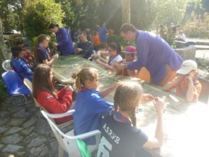 Le lendemain, nous nous sommes réveillés à 7h 30 puis nous avons pris notre petit déjeuner. Nous avons démonté les tentes et à 11h, nous sommes allés à la messe avec nos parents. Puis nous sommes revenus à l’Arche pour pique-niquer tous ensemble.