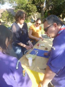 Nous avons goûté après les 2 premières activités. Nous avons ensuite fait nos services en groupe. Nous avons mangé du Chili-Con-Carné.