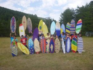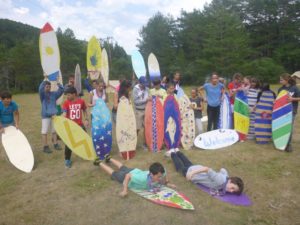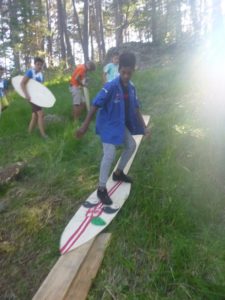 Notre activité favorite, je pense, fut le canyoning : passer dans la roche, sauter du haut des rochers. Nous avons aussi créé des planches 100% naturelles en bois. Cela nous a permis de belles descentes sur gazon : « nous sommes maintenant des surfeurs en herbe ».