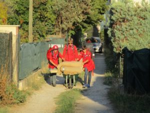 Le lendemain, certains parents nous ont emmené à Château-Neuf pour la fête de la courge. Chaque année c’est une journée qui nous permet de récolter beaucoup d’argent en vendant des calendriers et en organisant des taxis courge (emmener les courges achetées aux voitures des personnes). Une partie de l’argent que nous avons pu récolter ira au territoire et au groupe et une autre partie (taxi courge) sera gardée pour pouvoir réaliser notre camp.