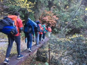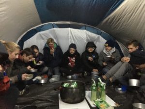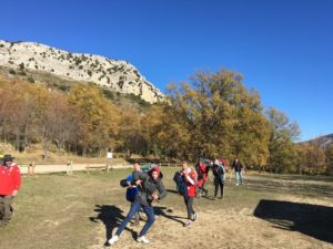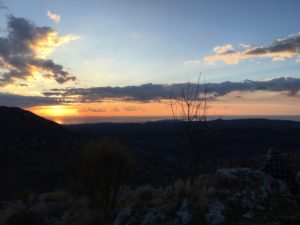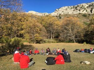 Ce weekend du 24-25 novembre, nous sommes allés à Gourdon à pied depuis deux départs. En effet, un premier groupe est parti de Caussol et a fait la route du Paradis en passant en haut des crêtes pour arriver à Gourdon par le haut. L’autre groupe est parti de Roquevignon et est monté jusqu’à Gourdon. Cet itinéraire a été un peu plus long et plus difficile. Finalement les randonnées étaient toutes deux magnifiques mais aussi glaciales car la pluie menaçait. Arrivés à Gourdon nous avons pu admirer un sublime coucher de soleil. Courageux comme nous sommes, nous nous sommes battus contre les éléments et avons campé malgré le froid ! Même à bout de force nous tenions le feu allumé et résistions au vent gelé de notre mieux. Nous avons même mangé dans les tentes pour éviter de finir comme des glaçons. Après une petite veillée histoire d’horreur nous avons tenté de dormir. Aux aurores, le lendemain matin, certains ont pu profiter (car ils n’arrivaient pas à dormir) du lever de soleil sur la mer et la montagne ! Programme du dimanche : temps de réflexion et d’échange sur les orientations sexuelles et rangement.