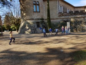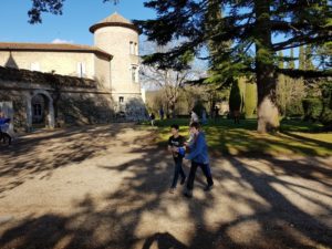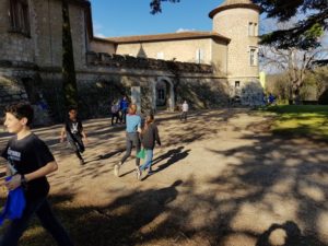 Sortie bleue à Mouans-Sarthoux qui commence sous un beau soleil et un drone. Après le pique-nique, nous avons fait un Poule-Renard-Vipère énergique dans les jardins du Château.