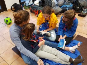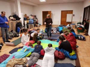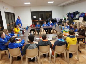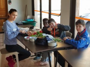Après avoir mangé une merveilleuse salade niçoise, nous avons rangé et nettoyé la salle. Ensuite, nous avons remercié Dieu pour la nature pendant le temps SPI (il faisait très froid). Nous avons organisé notre WE d’équipage pendant à peu près une heure, jusqu’au goûter. Puis (un peu trop tôt pour certains), les parents sont venus nous chercher pour nous ramener chez nous !
