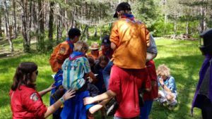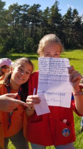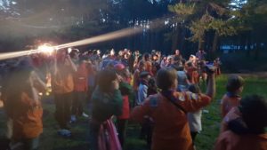 Heureusement nous avons eu le temps d’écrire des lettres convaincantes à l’inspecteur, Malamaire est sauvée. Nous avons donc fêté ça à la veillée en imaginant ce que sera le scoutisme dans 30 ans. Finalement beaucoup de blagues et de jeux, les valeurs du scoutisme resteront les mêmes.