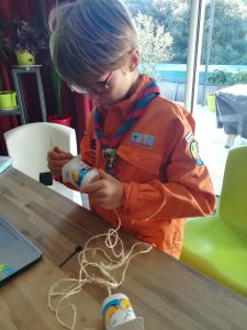 De l’autre côté, Indiana Jones a donné rendez-vous à 14h. Mais avant de se retrouver, il avait demandé de réaliser des talkies-walkies, autrement appelés des yaourtophones afin de pouvoir rester en contact avec la peuplade et lui-même pendant ce confinement !
