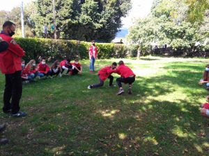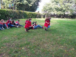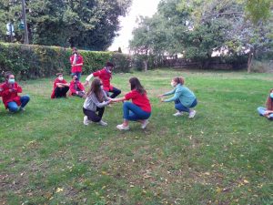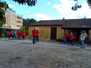 Nous avons ensuite marché de longues heures dans la campagne grassoise (quelques minutes qui paraissent longues quand elles vous séparent du déjeuner) afin de rejoindre la salle du plan de Grasse où nous avons pique-niqué tous ensemble. Après nous être rassasiés, nous avons eu un peu de temps libre puis nous avons enchainé avec un jeu, enfin plutôt un mélange de deux jeux : le béret et le combat de coq ! Un mélange vraiment amusant !