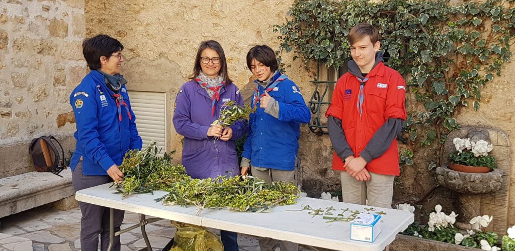 Après une nuit fraîche mais pas trop quand même, chacun était invité à proposer les Rameaux aux paroissiens le lendemain avant les messes dominicales. Un service traditionnellement rendu par le groupe aux paroisses de notre secteur (Grasse Saint Honorat, Grasse Notre Dame des Fleurs, Le Tignet et Roquefort-les-Pins).